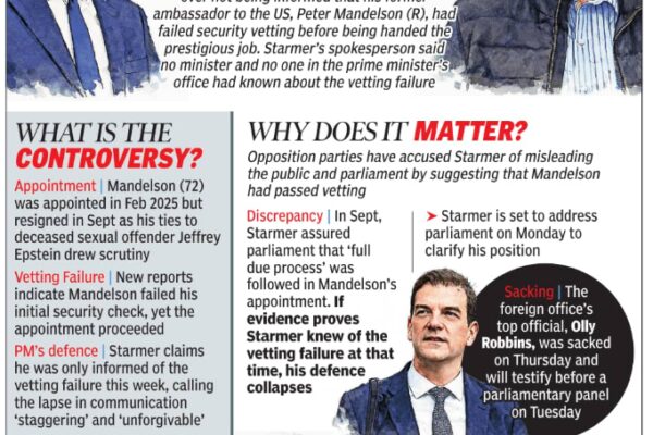 Mandelson vetting storm: Why UK PM Starmer is under fire — can he be ousted? British Prime Minister Keir Starmer said Friday he was “furious” that he was not told former Labour minister Peter Mandelson had failed his security vetting before becoming the UK’s ambassador to the United States, as opposition leaders called for his…
